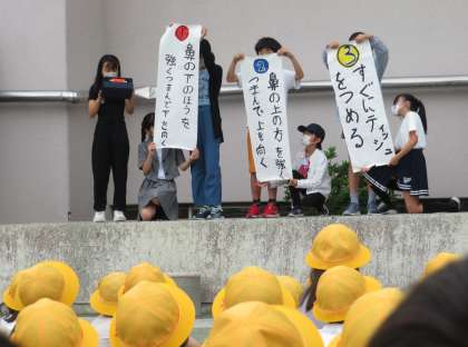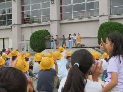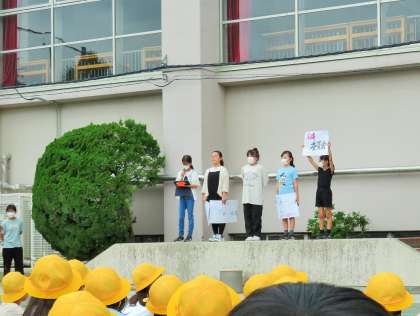 今日は朝の時間に、委員会企画集会がありました。今回の発表は、保健委員会と飼育委員会です。クイズや寸劇を織り交ぜるなどの工夫があり、楽しみながら委員会の活動内容を知ることができました。