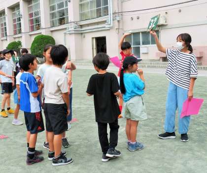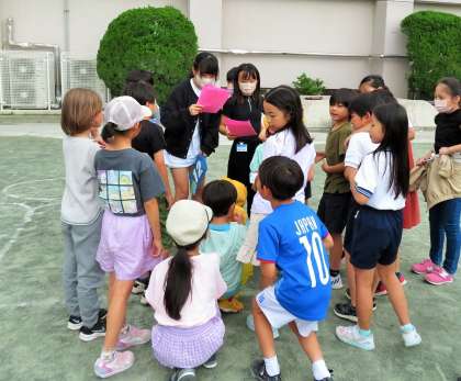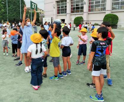 それぞれの班ごとにゲームの説明をして、さぁゲーム開始です。もちろんリーダーは6年生です。1年生から6年生まで、どの子も楽しめるゲームを考えるのはなかなか大変なことです。