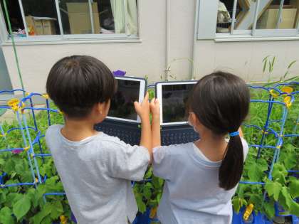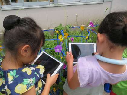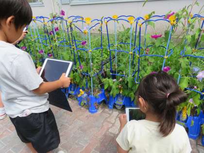 アサガオの写真を撮り、担任の先生の送り提出しました。