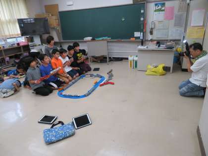 写真は、美術、アニメ、乗り物クラブの様子です。