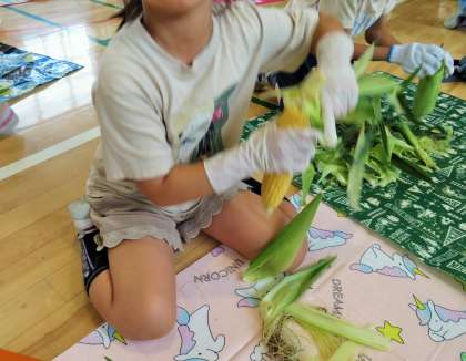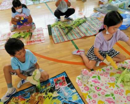子どもたちは皮をむき、中から艶やかな黄色い粒が見えると大喜びです。
