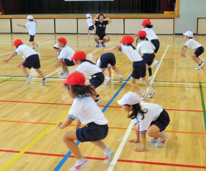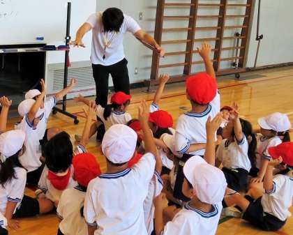 先生方は言葉も通じない派遣先に飛び込んでいくことになります。JICA派遣先は体育館などの設備がない国が多く、空き地のような校庭での授業が予想されるそうです。子どもたちは先生方に「がんばってください!」という気持ちを込めて、激励の拍手を送りました!