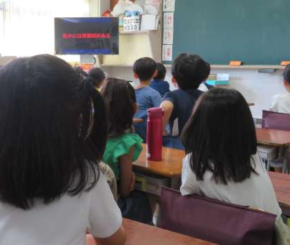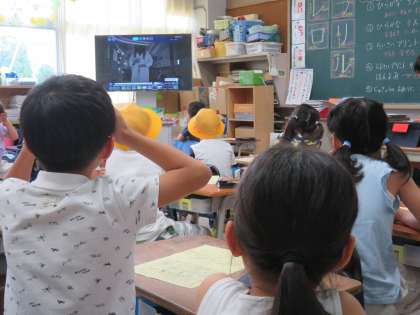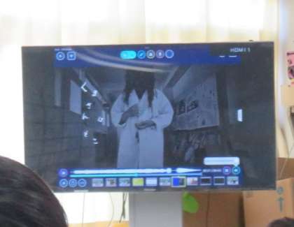 お化け屋敷の怖い映像は、見ないようにしたり目を隠したりしている子がいます!