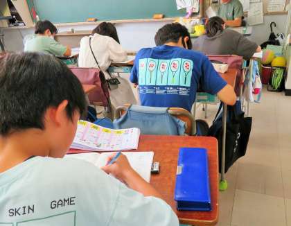 お喋りをしないと、あっという間に掃除は終わってしまいます。掃除の終わった6年生は黙ったまま黙々と漢字練習に取り組んでいました!