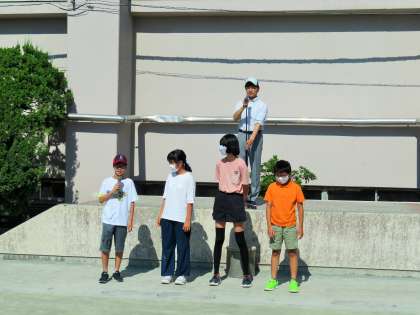 今日の全校朝会では、先週土曜日に開催した「松丘まつり」の話をしました。多くの子どもたちから「楽しかった!」という声が何度も聞こえてきました。これは3年生〜6年生が、お店の準備をはじめ、呼び込み、受付、ゲームの説明など、自分たちで工夫をしながら、お客さんに喜んでもらえるよう「お客様目線で」頑張ったからです。これからも「お客様目線」「相手目線」を大切に、「相手の立場に立って」考えて、より良い学級や学校をつくっていってほしいと思っています。