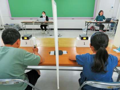 今回は、go/no-go実験による認知機能測定を5年生が行いました。ゲーム感覚でできる簡単な実験です。