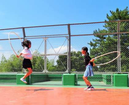 「シンクロフラフープ」や「フラフープくぐり」に挑戦しています!