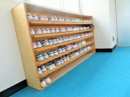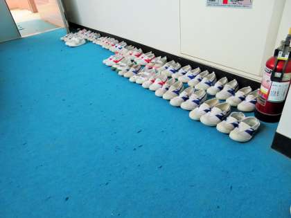 松丘小学校で大切にしている取り組み「あそべくつ」の「靴揃え」は、プールの下駄箱でも意識高く取り組むことができています。