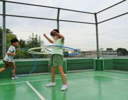 高難度のフラフープに挑戦しています!