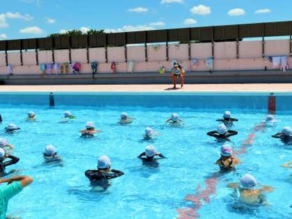 松丘小学校の夏季水泳教室9日目が終了しました。今日は1・2年生の子どもたちが検定にチャレンジしました。私たち教師も暑い中、連日がんばってきましたが、この夏でさらに水遊びが好きになってほしいと思っています。