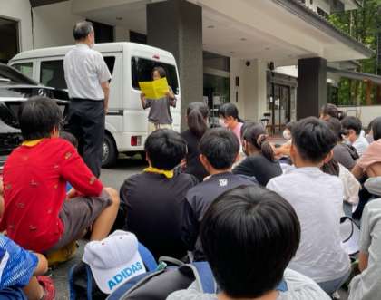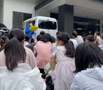 閉園式です。閉園式での姿勢も立派でした。ホテルの方々に心を込めて感謝の気持ちを表しました。
