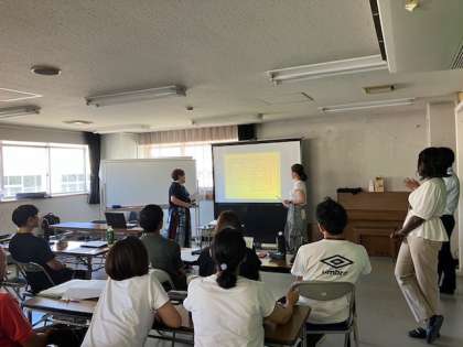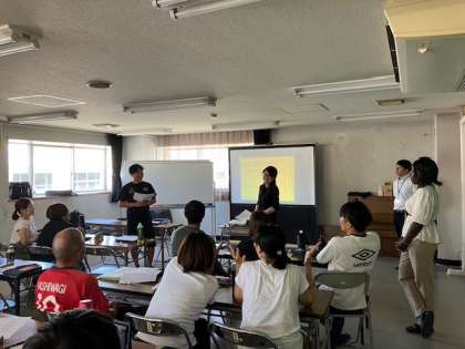 写真は、英語研修会の様子です。