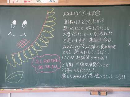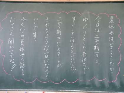 9/1 黒板には温かいメッセージが・・・8