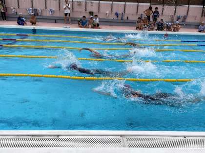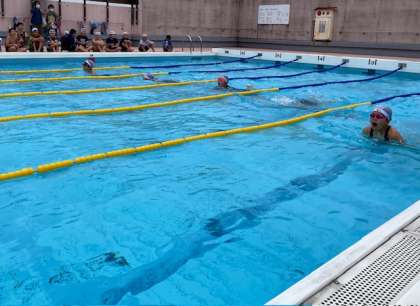 仲間の拍手を浴びて、真剣に泳ぐ姿がとても素敵です。練習をした分だけ確実に力はついています。最終種目は選抜リレーです!