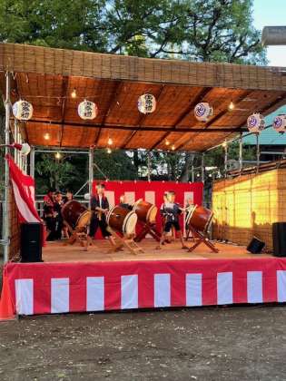 本日は、7月にせたがやホタル祭りとサギ草市が開催されたボロ市通りの「上町天祖神社 大祭 奉納演芸」に松丘子ども太鼓が出演しました。
