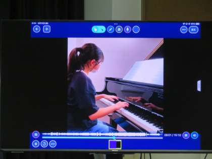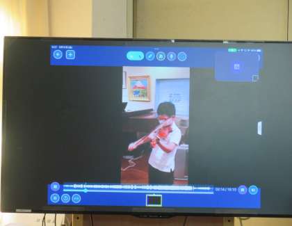 今日の音楽朝会は「ぼくも、わたしも、名プレーヤー♪」です。ピアノやバイオリン、金管バンド、先生の発表など、それぞれ工夫を凝らしたパフォーマンスで自分自身の特技を発表しました。