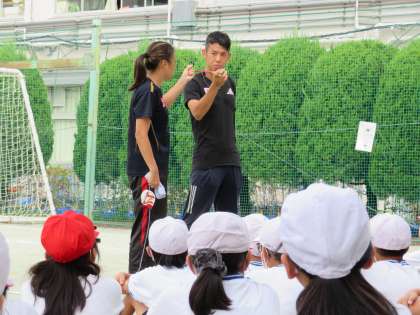 伴走時に障がい者ランナーと伴走者を繋ぐものは“きずな”と呼ばれるロープです。ご夫婦の楽しいトークショーや模範演技を見せていただきました。