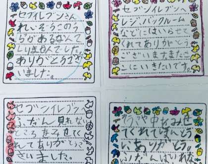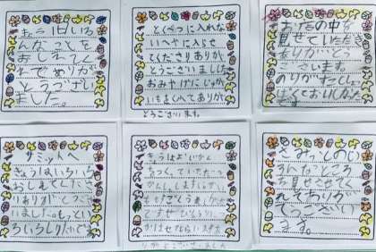 2年生として立派な態度で町中を学習して歩くことができました。学校に帰って振り返りをしながら、一人ひとりが感謝のメッセージを書きました。