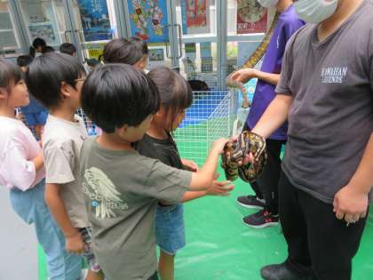 子どもたちは動物たちをやさしく触ったり抱いたり、えさをやったりして貴重な体験をすることができました。嬉しそうな声がたくさん聞こえてきました。指導員の皆さんが、動物の正しい扱い方や遊び方について教えてくださいましたので、どんな動物たちとも安全に楽しく触れ合うことができました。心が癒される楽しい時間をありがとうございました。