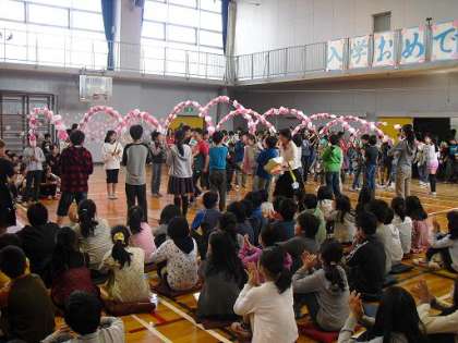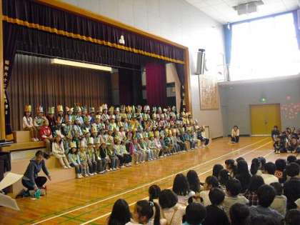 2年生以上がとても元気にかわいく「1年生になったら」を歌いました。体育館に、かわいい歌声が響き、1年生も楽しそうでした。