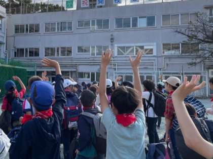 早朝より、保護者の方々のお見送りに感謝申し上げます。学校では教職員が総出で、そして早く登校していた子どもたちが「行ってらっしゃーい!」と見送りをしてくれました。