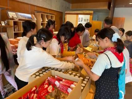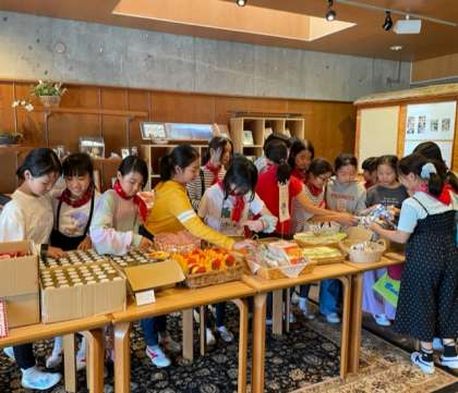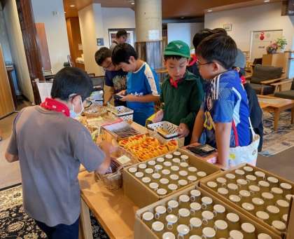 お土産を購入しています。お家の人の喜ぶ顔を考えながら選んでいます。子どもたちの行動が早いので、早め早めに計画が実施できています。