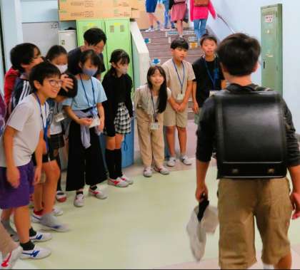 10月の「優郷の学び舎」あいさつ運動1日目です。雨のため昇降口と下駄箱付近に分かれ、登校して来る子どもたちへ気持ちのよいあいさつを投げ掛けてくれています。