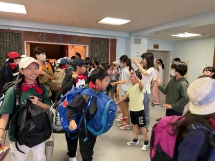 2年生や6年生の教室からも「5年生いってらっしゃい」の表示をしてくれていました。本当に温かい子どもたちと先生の学校です。