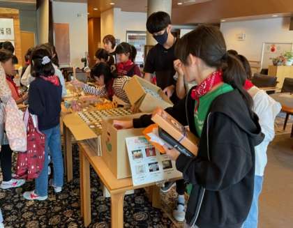 お土産を購入しています。お家の人の喜ぶ顔を考えながら選んでいますので、温かい気持ちになります。子どもたちの行動が早いので、早め早めに計画が実施できています。