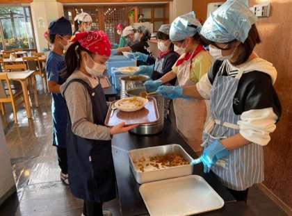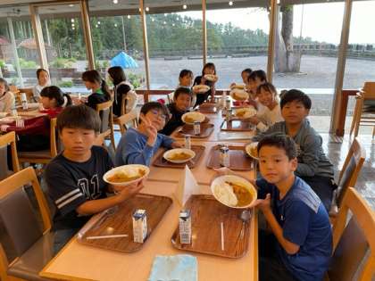 夕食のカレーライスを美味しくいただきました。みんな元気で食欲も旺盛です。