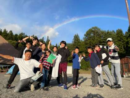 キャンプファイヤー係が活動中に綺麗な虹がかかりました。頑張っている子どもたちへのプレゼントです!
