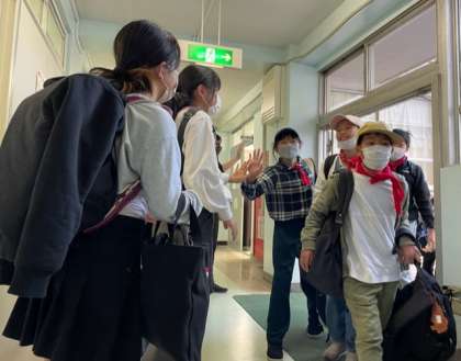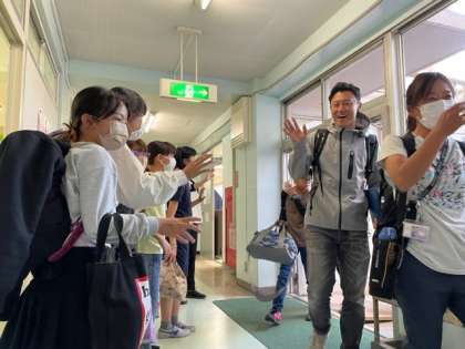 川場移動教室の観光バスから降りてきた5年生3,4組を「おかえなさーい!」と、お迎えしたのは5年生1,2組の子どもたちです。正門側では6年生が「おかえりなさい!」、下校後の2年生も教室からの掲示で5年生を迎えてくれました。先生たちも総出でお迎えです!