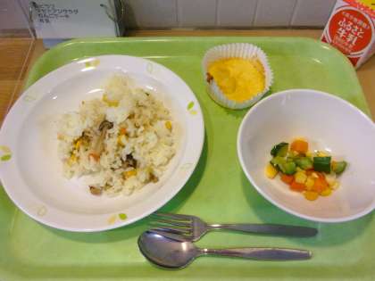 今日のきのこのピラフには、しめじとマッシュルームが入っています。