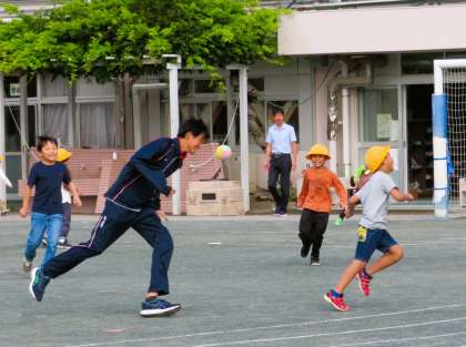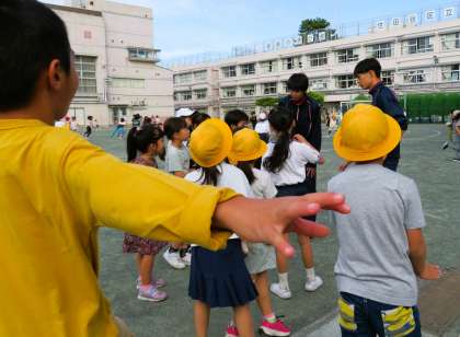 今日は「優郷の学び舎」弦巻中学校2年生の生徒3名が職場体験に来ました。朝遊びからはじまり授業のお手伝いや子どもたちのサポートなど、次から次へと仕事が待っています。