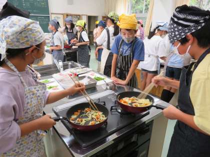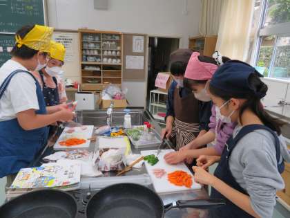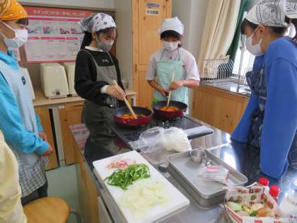 「いろどり野菜炒め」を作っていました。家庭科室にはいい香りが漂っていました!