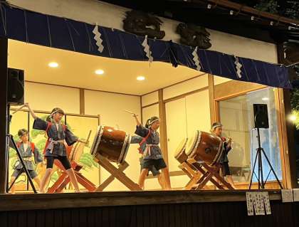 今日は弦巻神社例大祭2日目です。午前中の子ども神輿は雨天のため中止となりましたが、午後には天気も回復し、松丘子ども太鼓が例大祭奉納演芸のオープニングを見事に飾りました。