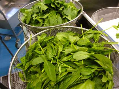 今日の給食にはほうれん草も小松菜も入っています。