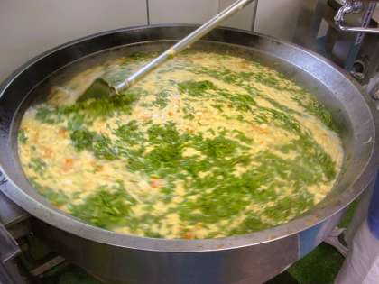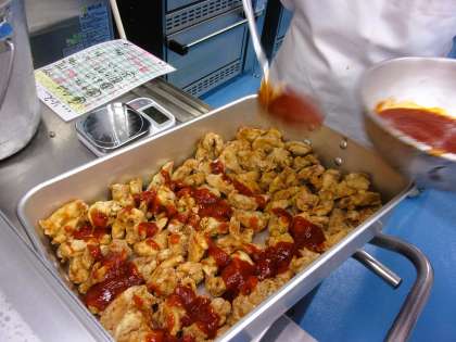 給食では、ケチャップやしょうゆ、砂糖を使って食べやすい辛さを目指して作りました。