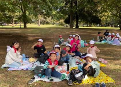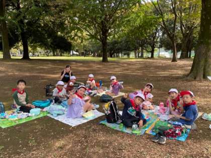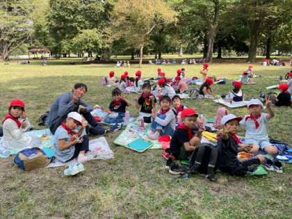 待ちに待ったお弁当タイムです。学校から持参した泡石鹸で手を洗ってからいただきました!