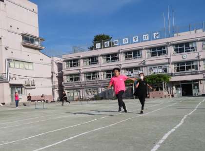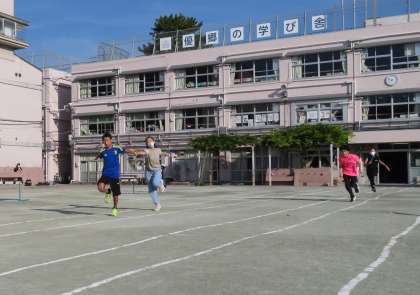6年生の代表選手は、連合運動会に向けて男女混合4×100mリレーの朝練習を行っています。先生の話をよく聞いて、一回一回のバトンパスやダッシュに真剣に取り組んでいます。