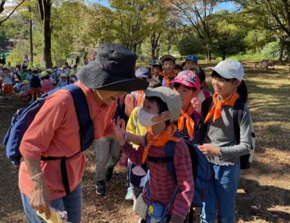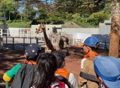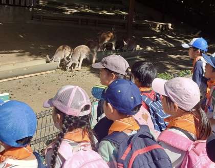 キリン、そしてオーストラリア園のカンガルーなどを見ることができました。昼食場所の広場では、音楽の大嶋先生に会うことができ、子どもたちは大喜びです。
