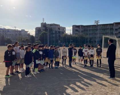 今日から「第13回世田谷子ども駅伝」に向けての合同練習会がスタートしました。優郷の学び舎⁺(プラス)チームからは、男子1チーム、女子1チームがエントリーしています。小学生6名、中学生4名がチームを組み、たすきリレーをします。まずは、弦巻小学校の校長先生、私、そして監督である松丘小の古川先生から挨拶と決意表明です。