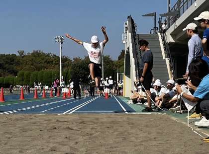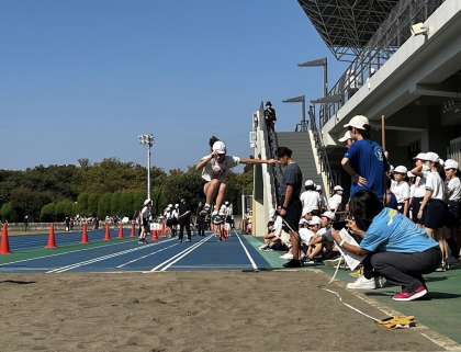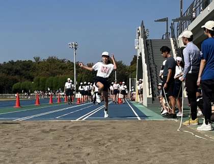 写真は、走り幅跳びの様子です。男女ともに上位に入りました。