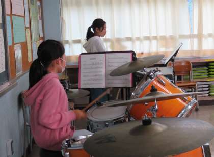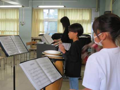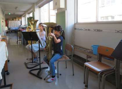 金管バンドは毎日休みなしで活動しています。いつも気持ちのいいあいさつがあり、朝から清々しい気持ちになります。現在は12月のバンドフェアに向けて、新たな曲をマスターしようとチャレンジしています。