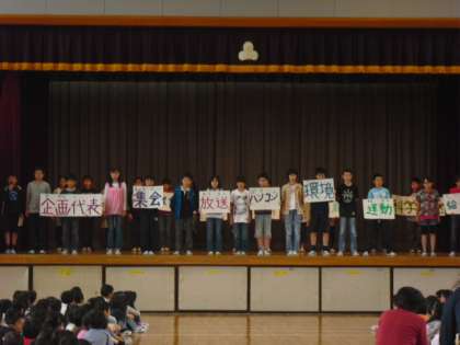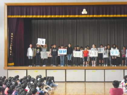 松丘小学校には13の委員会があります。委員会活動は5年生・6年生の全員と4年生の一部が参加しています。今日は、ひとつひとつの委員会の活動内容や全体への呼びかけを行いました。