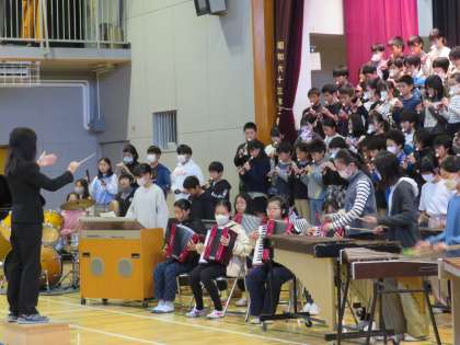 さすが6年生の合奏です。素晴らしい演奏でした。聴いている子どもたち、先生方、保護者の方々から、体育館いっぱいに響き渡る大きな拍手をいただきました。ありがとうございました。