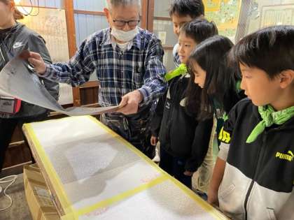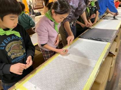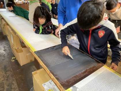 ムラができないように均一に伸ばしていくのが難しいのです。型紙をはがすと、細かい小紋柄が現れます。