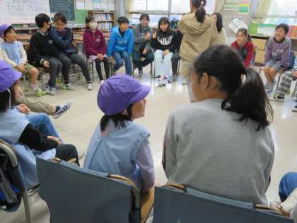 5年生と松丘幼稚園の年長さんとの交流会がありました。5年生がお迎えしたあと、教室で交流遊びをしました。