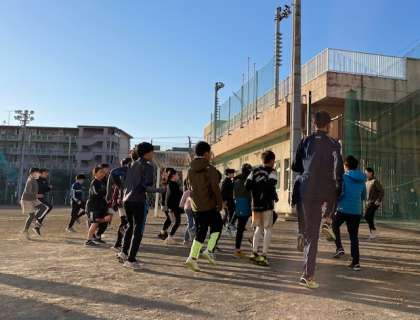 今朝は、世田谷子ども駅伝に向けての合同練習会です。優郷の学び舎⁺(プラス)チームからは、男子1チーム、女子1チームがエントリーしています。小学生6名、中学生4名がチームを組み、たすきリレーをします。