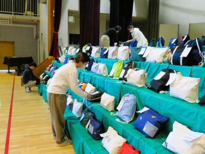 写真は5,6年生、家庭科作品の様子です。